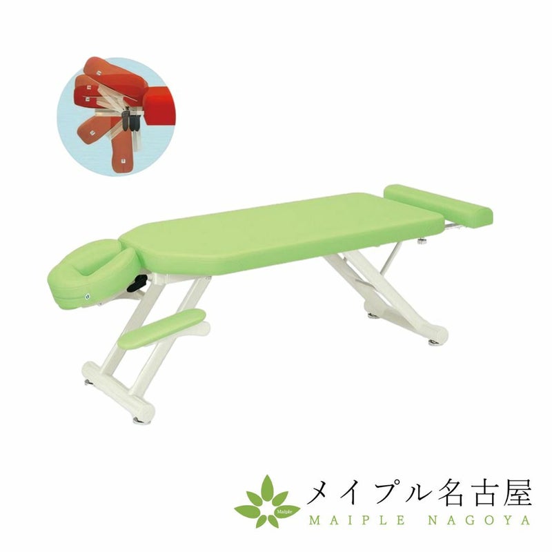 うつ伏せでの施術に最適な専用手置き台付き入門用廉価タイプの施術台。