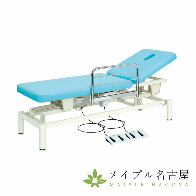電動旋回昇降式で高さを調節できるフットスイッチ操作の電動施術台。