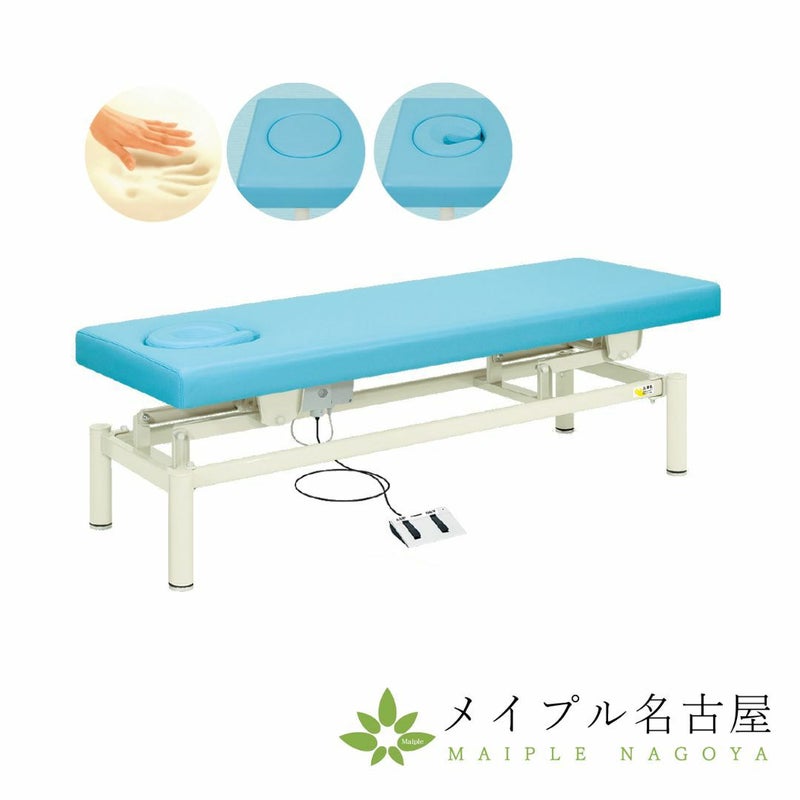 電動旋回昇降式で高さを調節できるフットスイッチ操作の電動施術台。