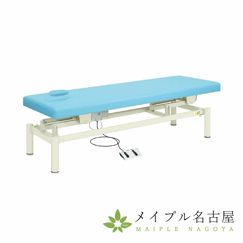 電動旋回昇降式で高さを調節できるフットスイッチ操作の電動施術台。